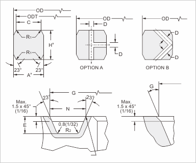 在SBX環(huán)截面兩壓力通道孔防止壓力鎖時,連接是由水下。提供鉆井壓力通道孔兩種選擇。一個加寬容0,2 mm(0008)寬度和高度是允許的,只要在任何環(huán)的寬度或高度變化不超過0.1毫米(0004)沿整個圓周。